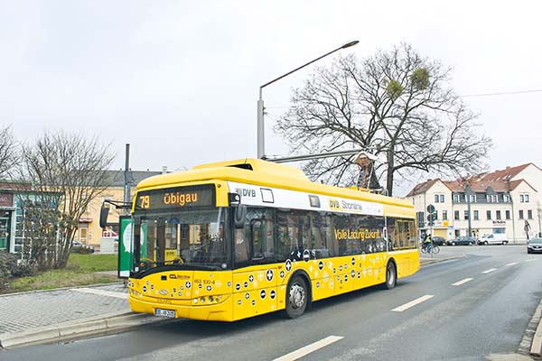 Doch nicht nur auf der Schiene ist die DVB AG mit Strom unterwegs. Mit 18 Hybridgelenkbussen